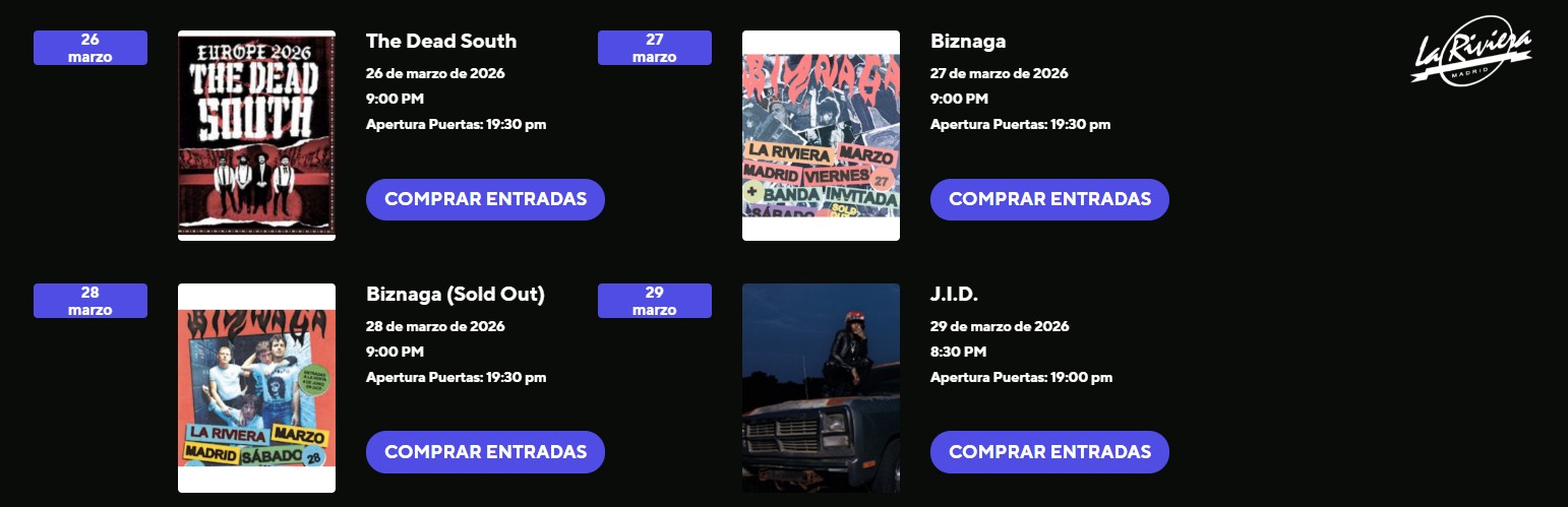 Conciertos en la sala La Riviera